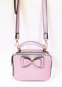 New Alyssa Metallic Mauve Pink Vegan Leather 2 Zip Bow Gold Accent www.ebay.com