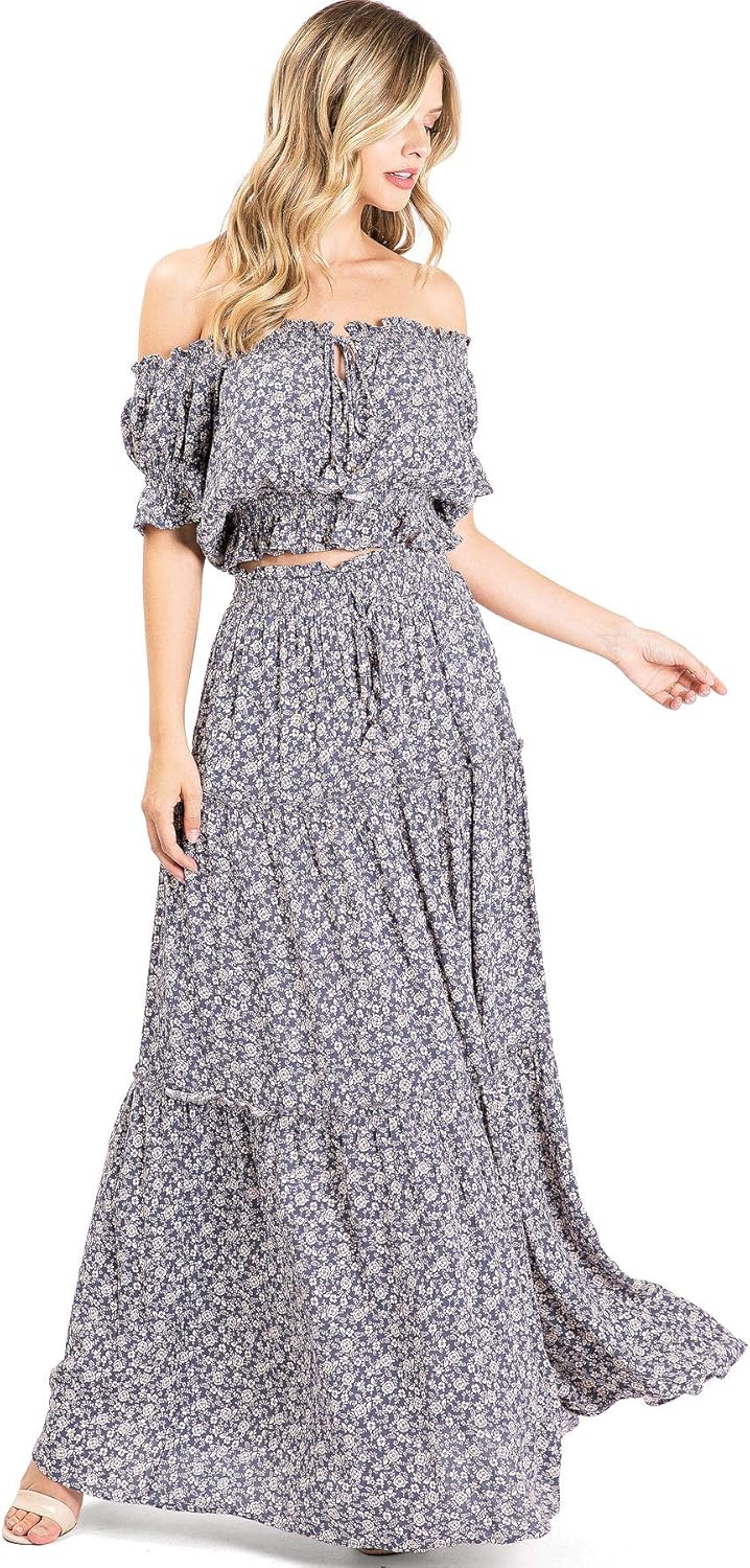Dress Forum Women S Matching Boho Crop Top Maxi Skirt Set M www.amazon.com