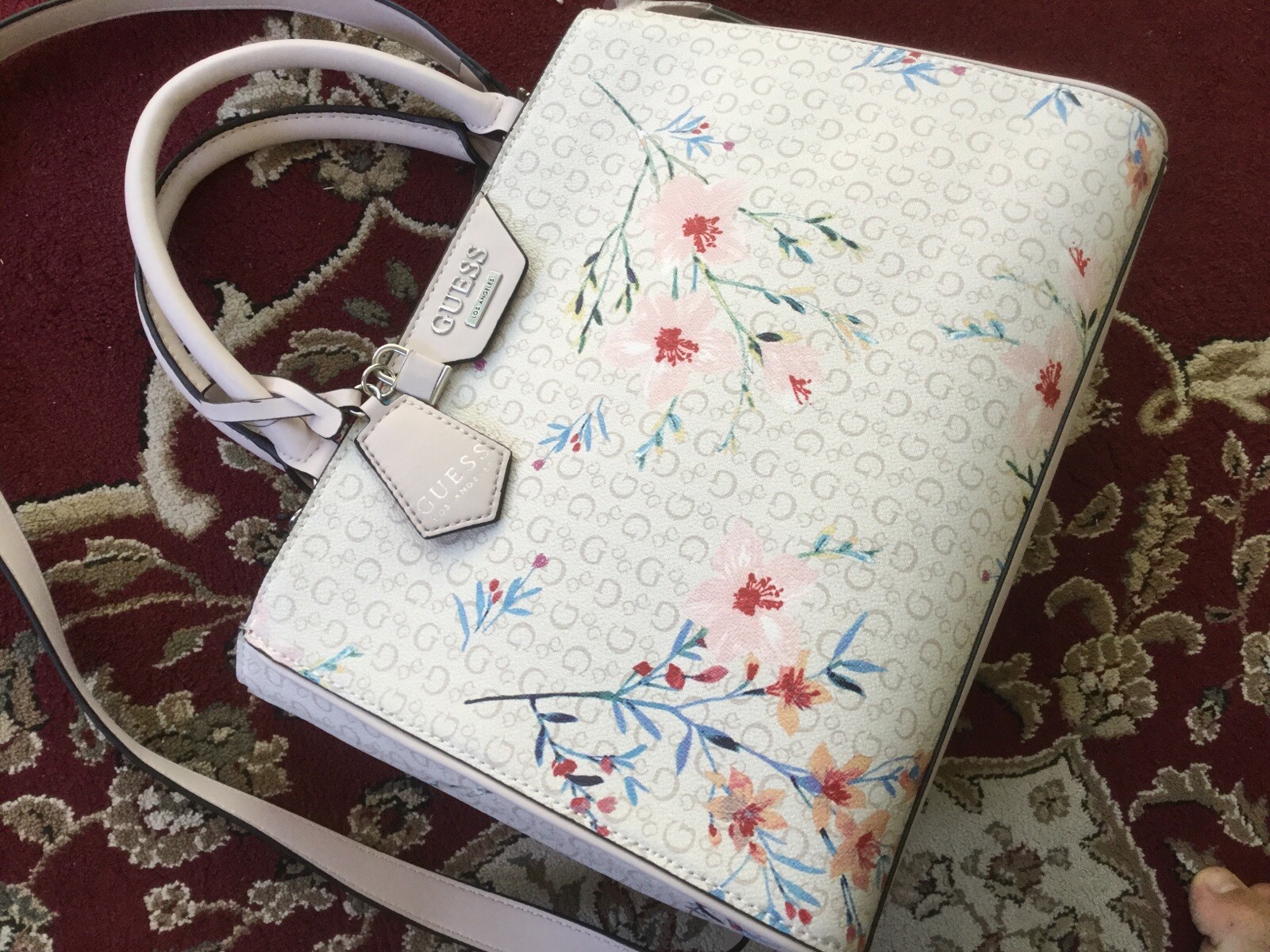 Guess Crossbody Bag Signature Logo White Blue Khaki Trim For Sale