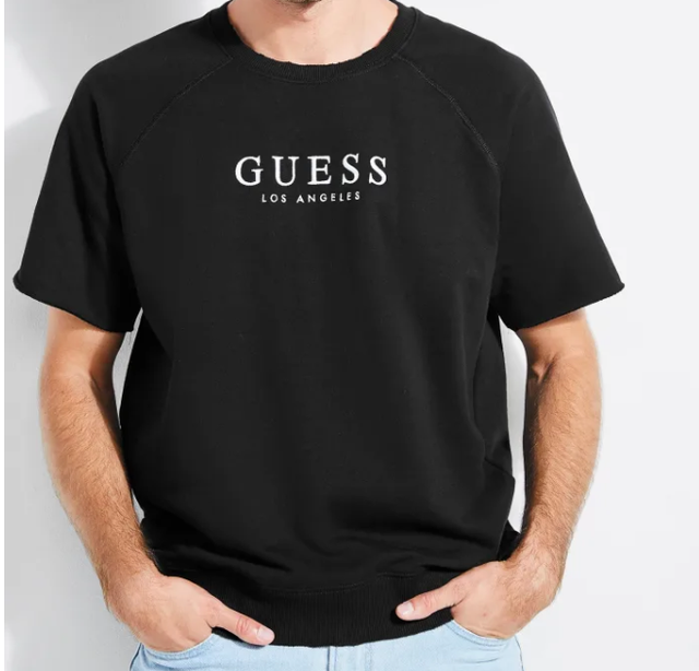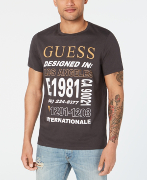 Guess Los Angeles Split Crew Neck T Shirt Triangle Logo Foil Mens