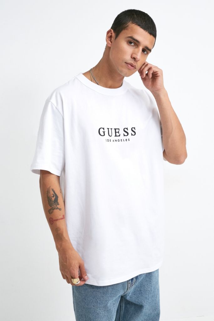 Firstday guess staggered logo t shirt 3900 now 3120 more colors. Guess los angeles t shirt men large orange graphic design. Mens los angeles graphic t shirt 3400 sale 2550 extra 20 off code.