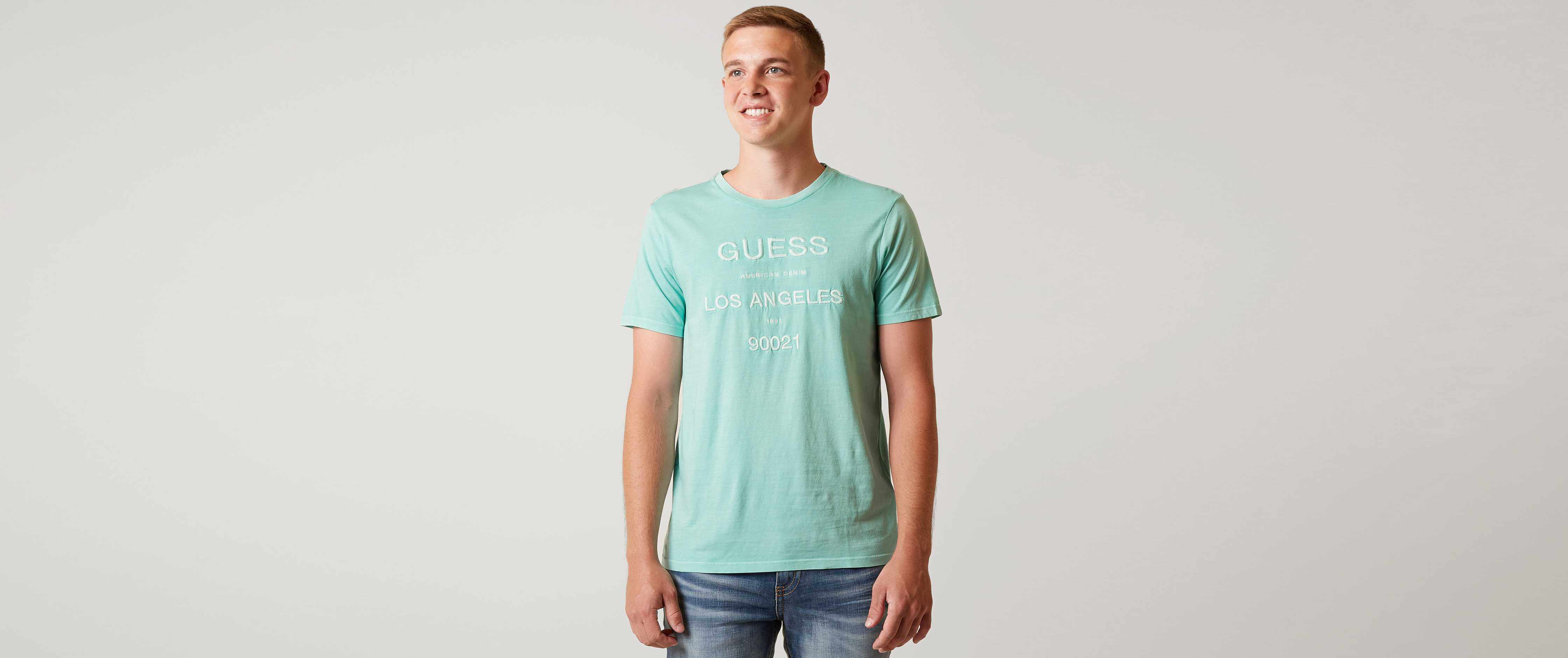 Upgrade your casual day to day look with on trend graphic and basic tees complete with a pair of stylish jeans offered in an array of washes and designs. Mens guess los angeles t shirt tee large l. Discount applies to a maximum spend of 1000 at guess or marciano.