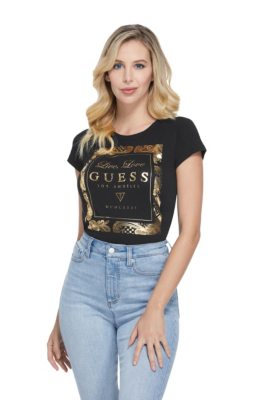 Guess Black T Shirt Placed Print T Shirt Women S T Shirts Tops