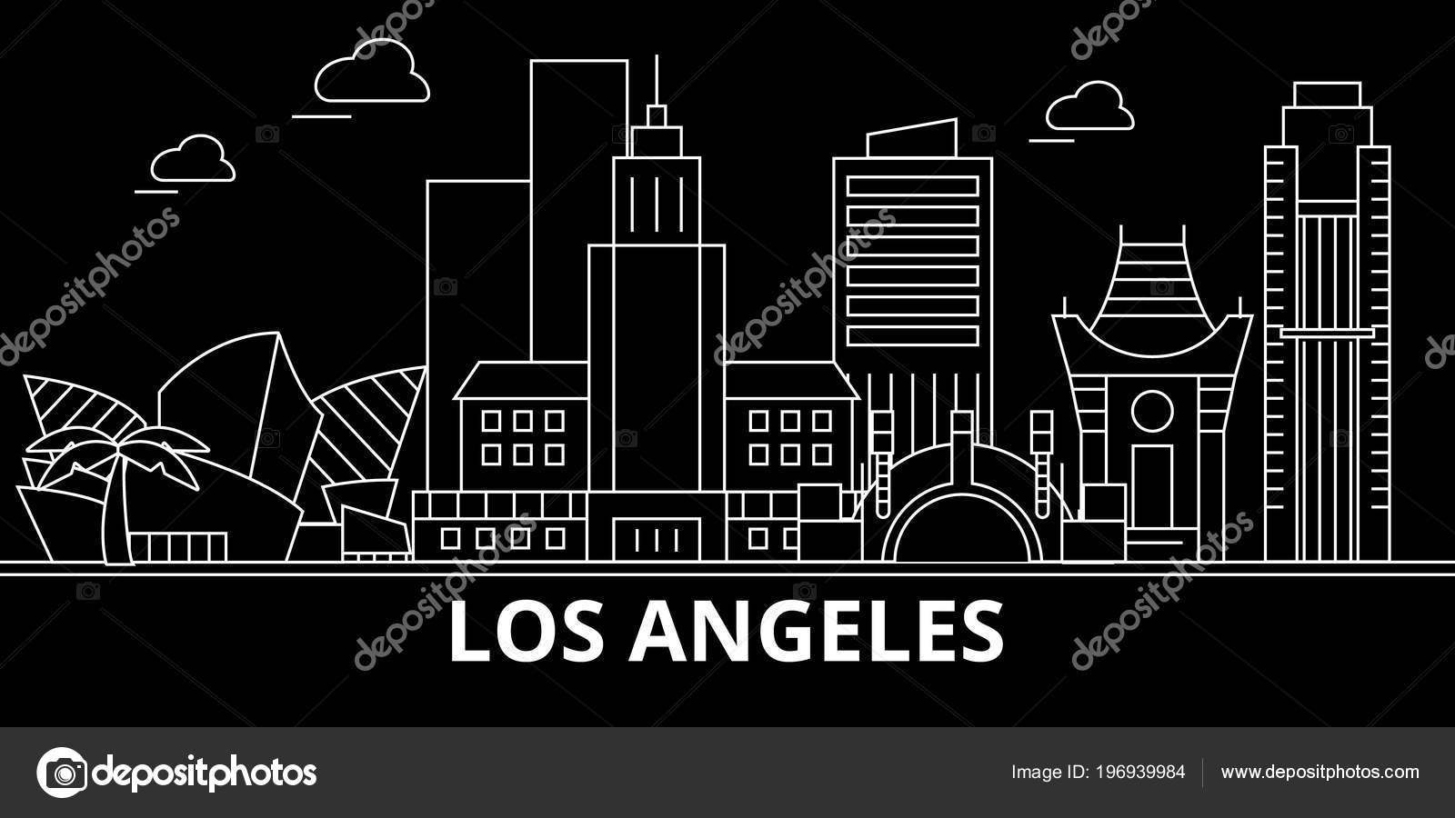 Los Angeles City Silhouette Skyline Usa Los Angeles City Vector City American Linear Architecture Los Angeles City Travel Illustration Outline Landmarks Usa Flat Icon American Line Banner Stock Vector C Iconsgraph 196939984