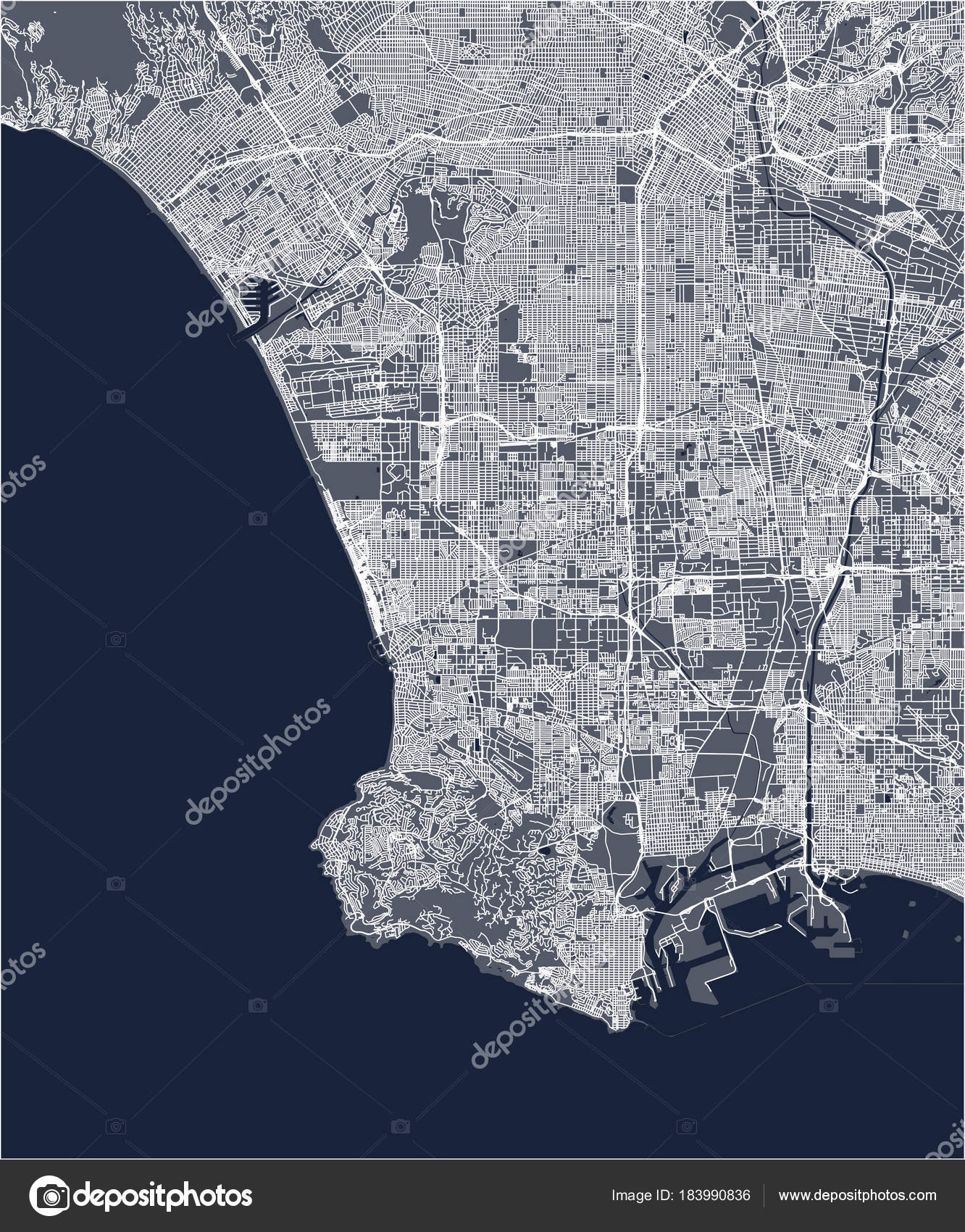 Los Angeles Abstract City Map Black And White Digital Art By Frank