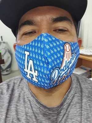 La Los Angeles Dodgers Baseball Cotton Fabric Face Mask Elastic Tie For Adult Men Women And Children Handmade With Carbon Filter Pocket