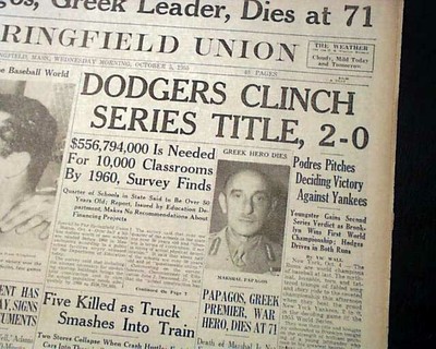 Find Newspaper Front Page Repros 1955 Brooklyn Dodgers Win World