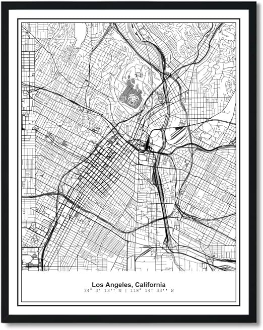 Amazon Com Squareious Los Angeles Map Poster Print Modern Black