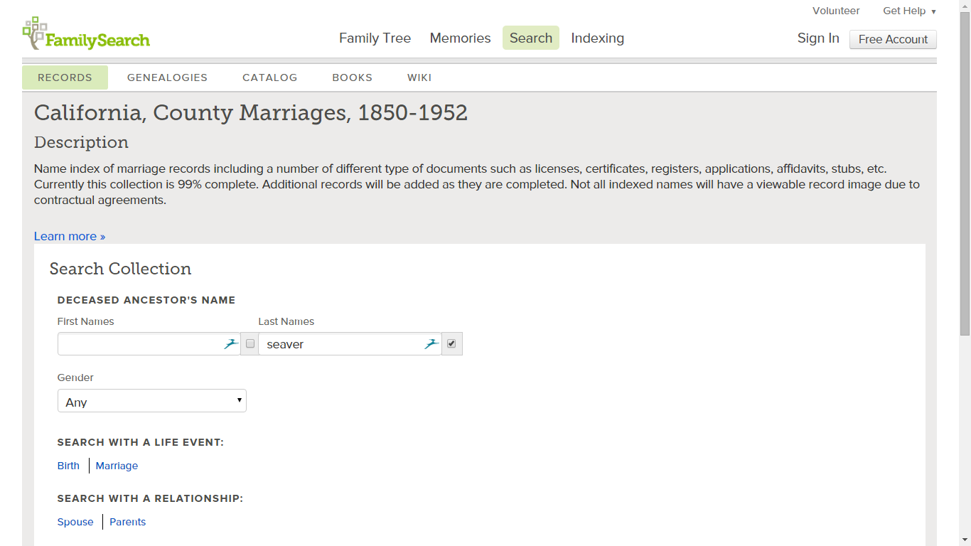Southern California Vital Records Volume 1 Los Angeles County
