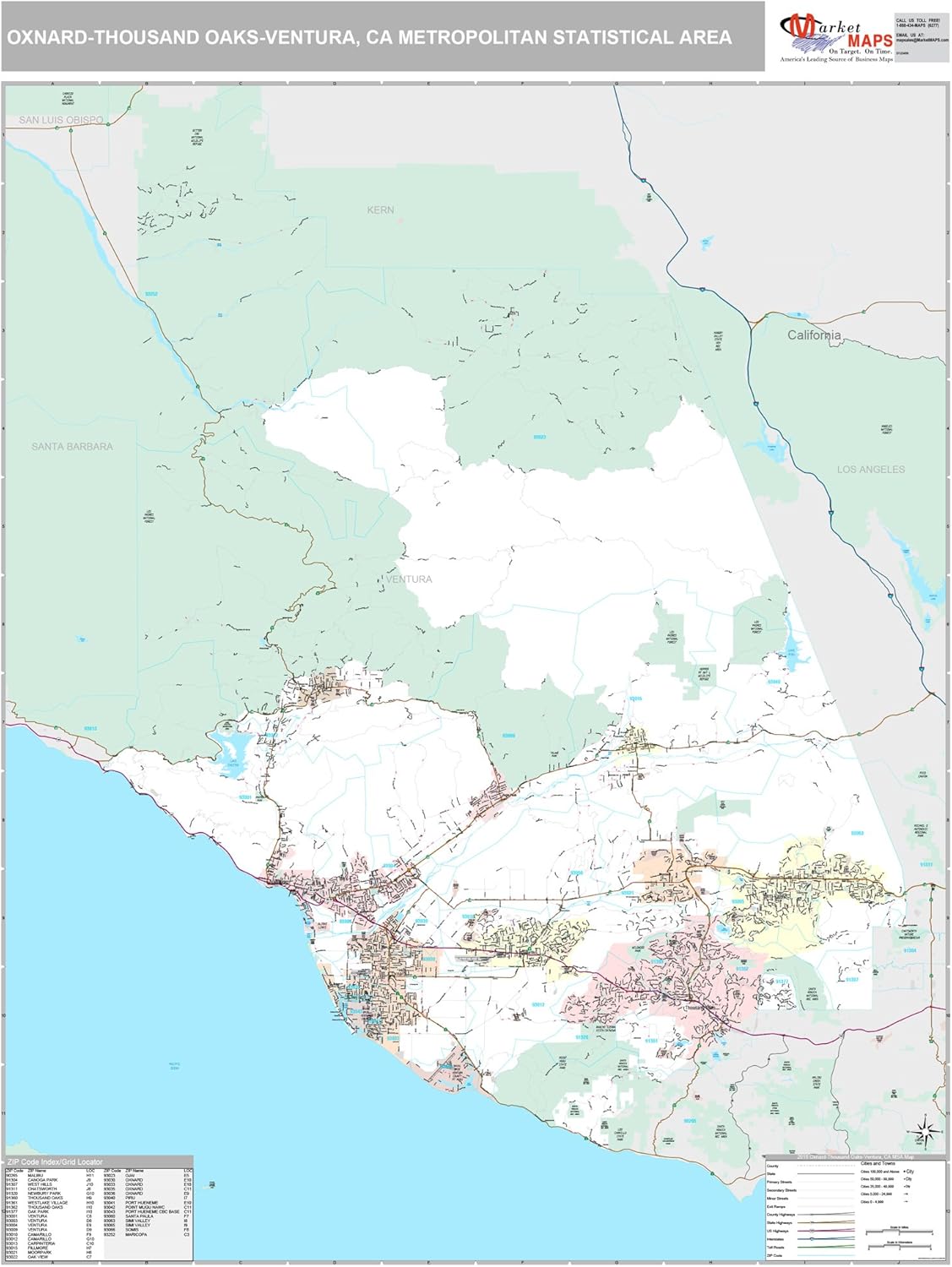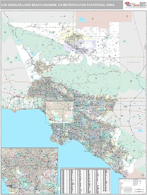 Greater Los Angeles Detailed Region Wall Map With Zip Codes