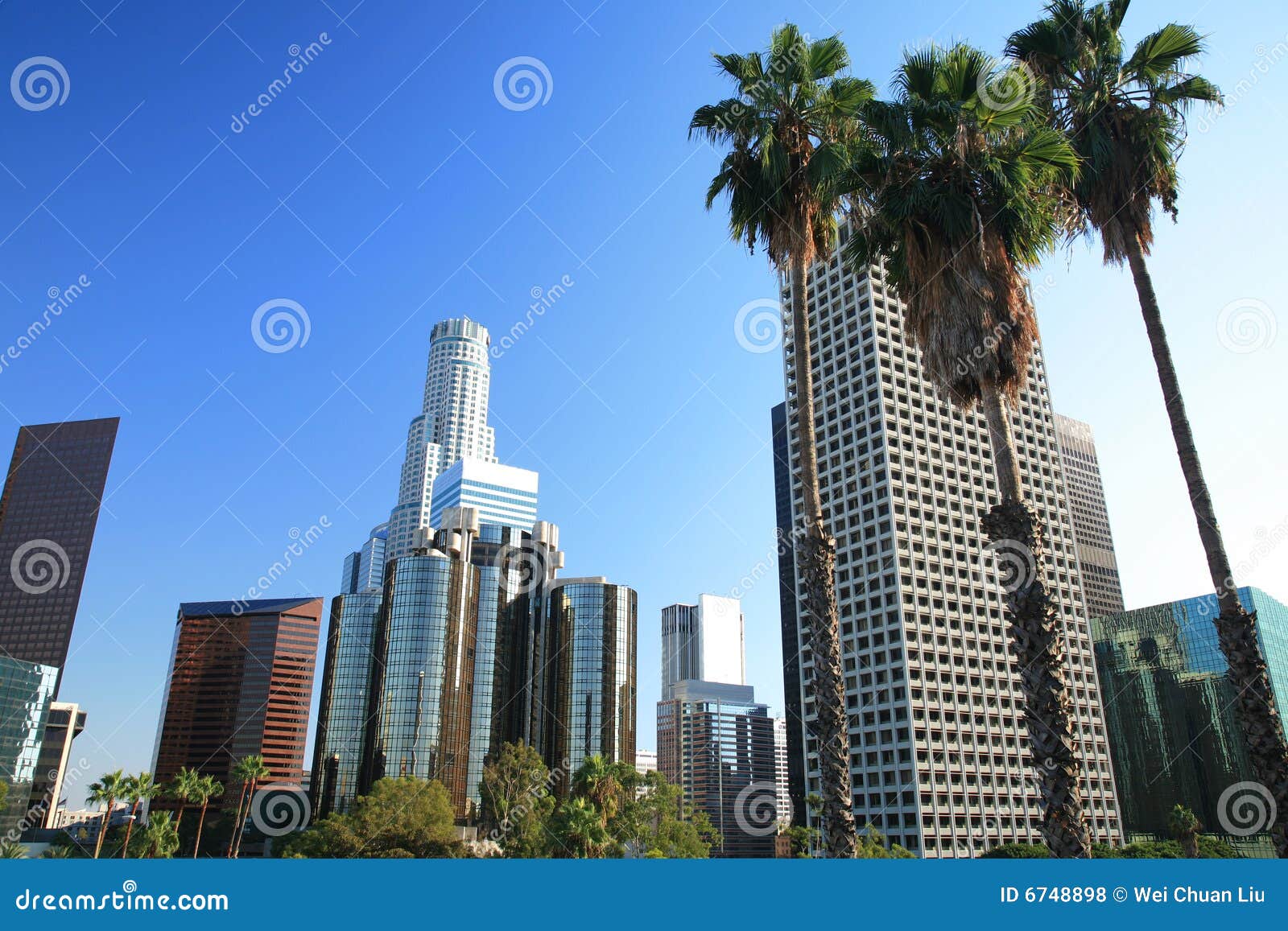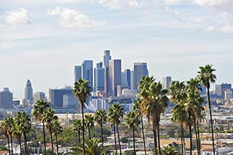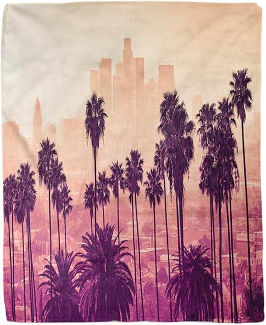 Los Angeles Skyline With Palm Trees In The Foreground Plush