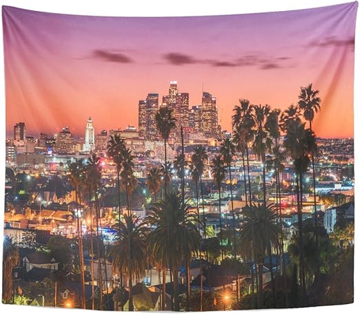 4k Downtown Los Angeles Skyline With Palm Trees At Sunset