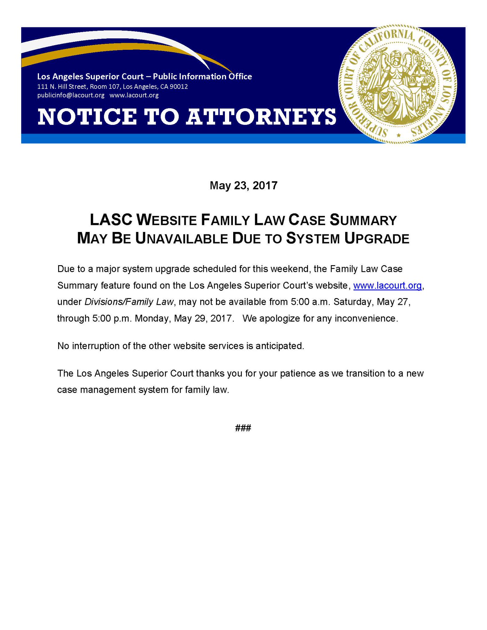 May 2014 General Order For Unlawful Detainer Cases In Los Angeles