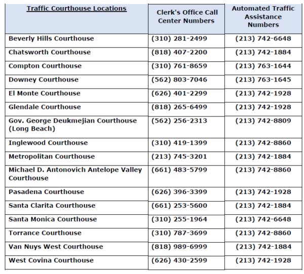 Los Angeles County Metropolitan Traffic Court California Ticket