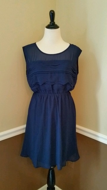 Ya Los Angeles Modcloth Dress Medium Blue Black Stretch 39 99 Picclick